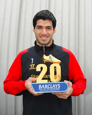 Suárez recibió el premio por ser el primer jugador en llegar a los 20 goles.